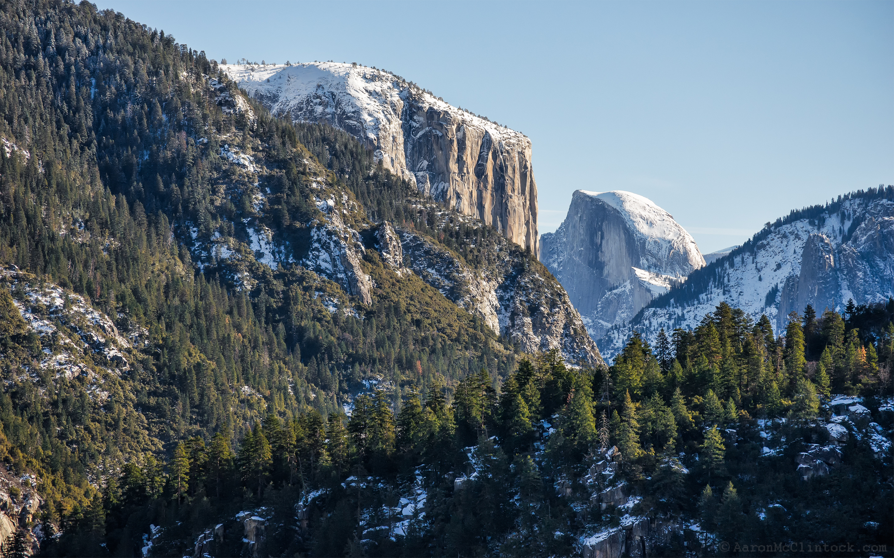 Half-Dome as seen from Half-Dome overlook in winter. A portion of El Capitan can be seen just to the left of Half-Dome.