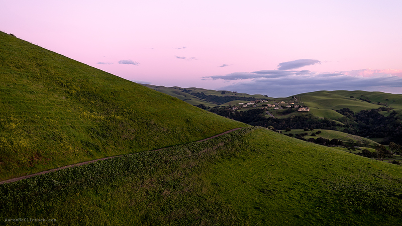 An affluent gated community nestled in a valley high in the East Bay hills. Taken from Ed Levin County Park in Milpitas, CA.