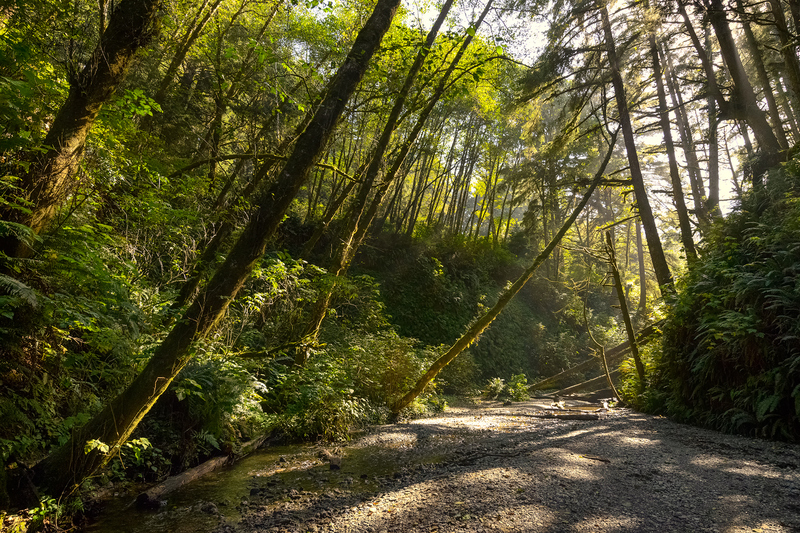 Late morning light hitting the opening of Fern Canyon in Prairie Creek Redwoods State Park.