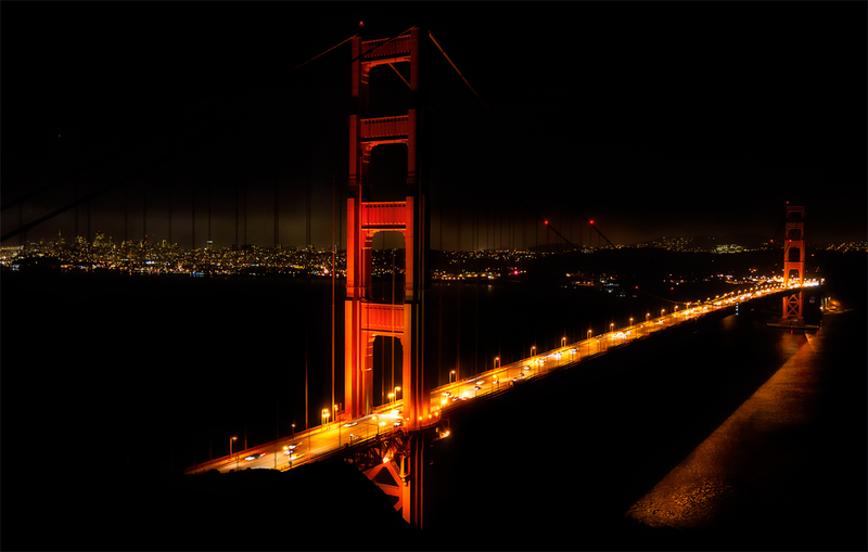 Looking across the Golden Gate at night from the Marin Headlands. Taken at the Battery Spencer overlook. Battery Spencer is a collection of World War II bunkers that was used to protect the Bay Area from invasion.