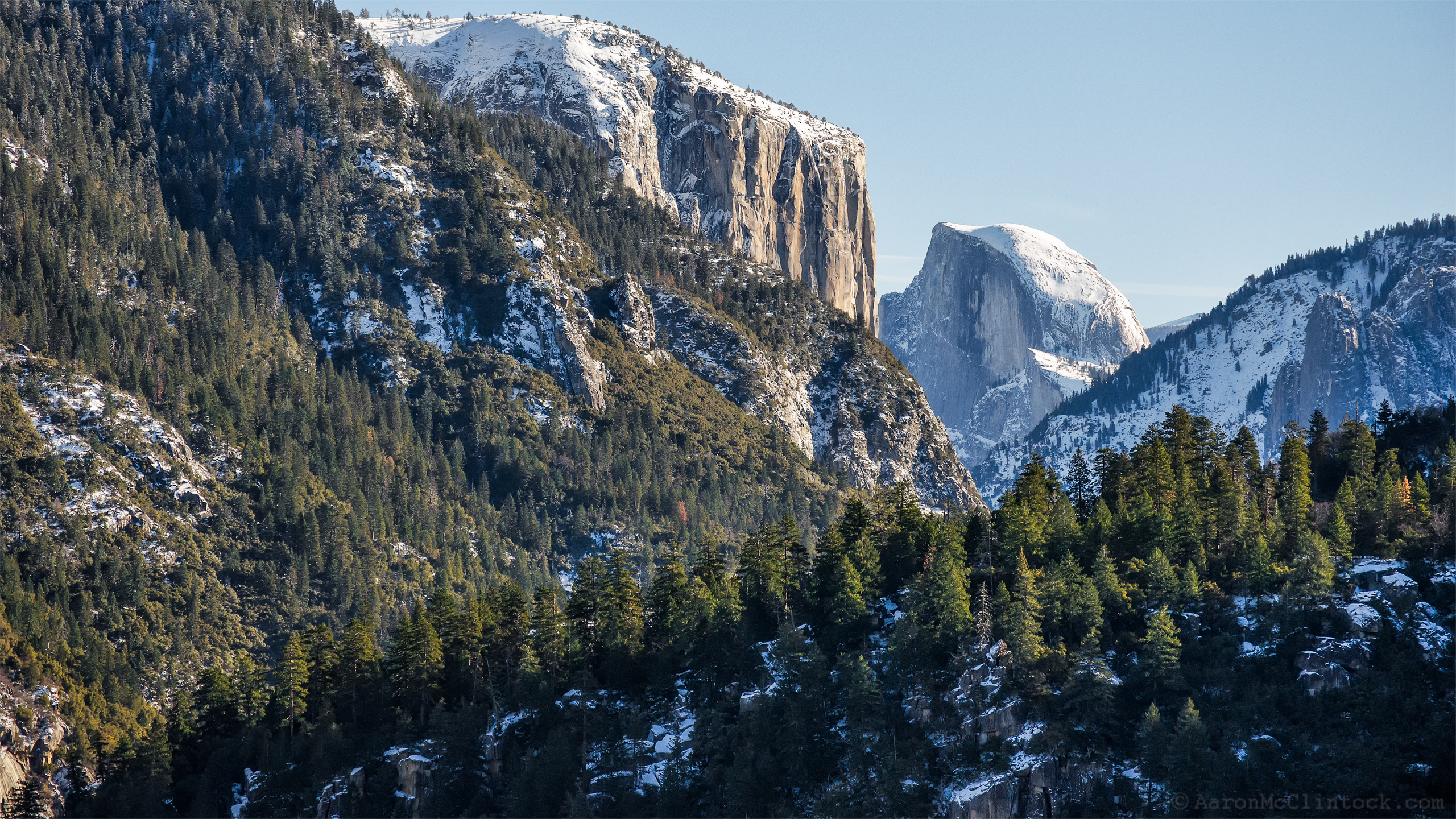 Half-Dome as seen from Half-Dome overlook in winter. A portion of El Capitan can be seen just to the left of Half-Dome.