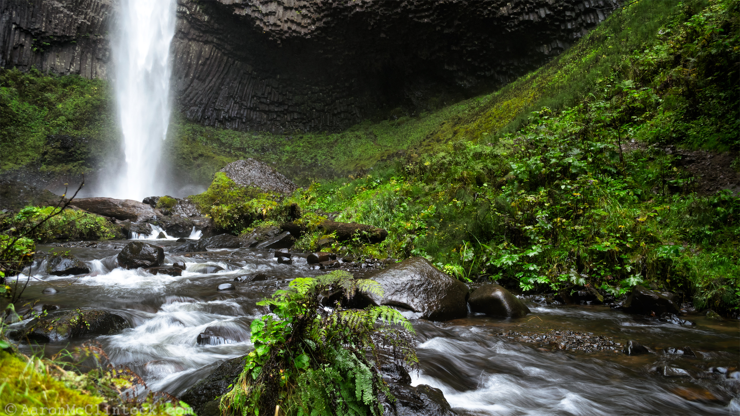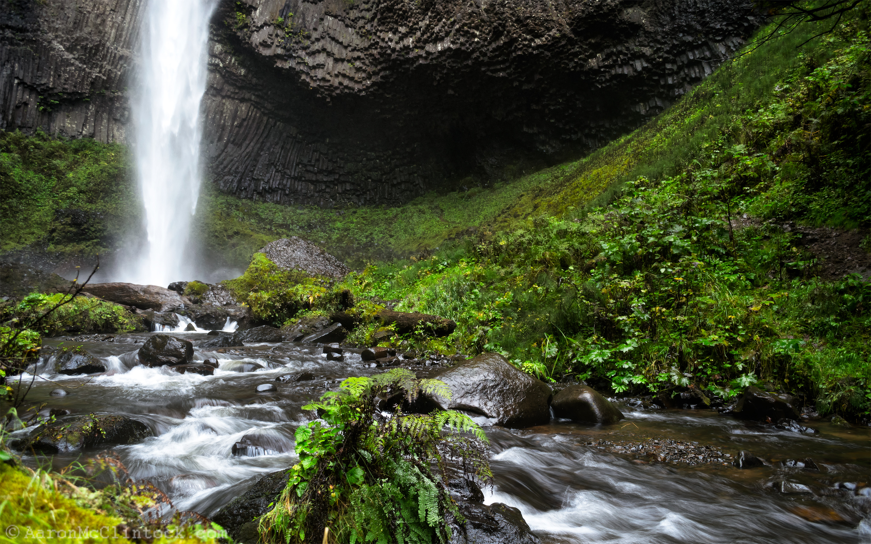 Latourell Falls in the Columbia River Gorge. Columnar jointing formed by river basalt flows can be seen.