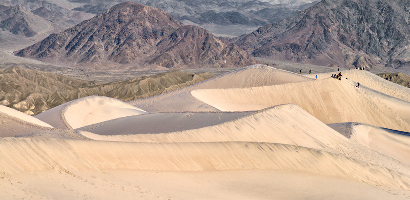 The sand dunes at Mesquite Flat in Death Valley. The most popular dunes in the park due to their easy accessbility and close proximity to the Stovepipe Wells facilities. The dunes at Mesquite Flat reach up to around 150 ft tall.
