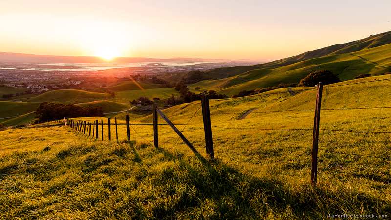 The last seconds of light hitting the rolling green hills that make up the slopes of Mission Peak. Taken in Ed Levin County Park in Milpitas, CA.